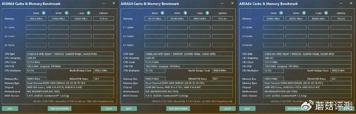 ▼蘑菇这里选择好香、逆天香两档跑个测试,相比较于默认情况,内存的读取速度提升约4000MB/s、写入速度提升约6000MB/s、复制速度提升约6000MB/s,延迟下降约7ns左右。