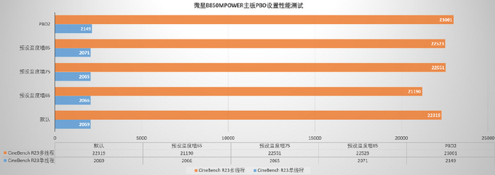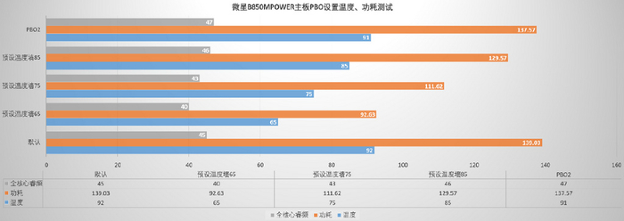 ▼横向对比下,预设温度墙65会略低于默认性能表现,预设温度墙75、85都会略强于默认表现。不过,如果有耐心的话,PBO2依然是性能表现更加出色的选择。