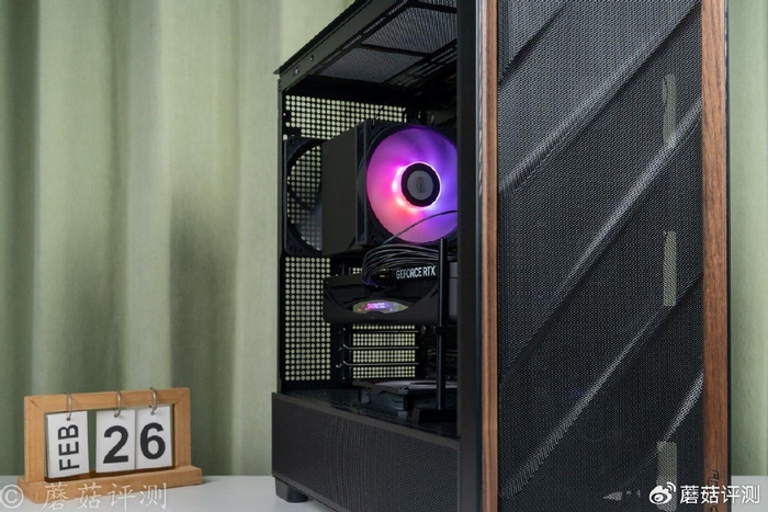 ▼机箱用的是安钛克的FLUX中塔机箱,这款机箱的颜值很漂亮,机箱前部有大面积的金属冲孔网,表面还有冲压的造型,颜值漂亮的同时,还能提供充足的进风。