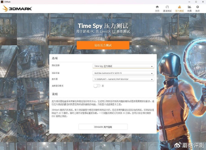 ▼跑个3Dmark的压力测试,TS模式,让显卡满载。