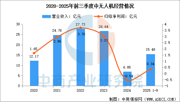 纵横股份是中国垂直起降固定翼工业无人机的专业化企业,深耕测绘、电力巡检与安防领域。公司产品以垂直起降与长航时性能为核心特点,并通过科创板上市进一步强化研发与市场能力,是工业级无人机细分市场的代表性上市公司。2025年前三季度,纵横股份营业收入为3.22亿元,同比增长57.01%,归母净利润亏损1981.16万元,同比增长62.93%。上半年,公司无人机系统收入9288万元,占比68.97%,无人机服务收入1844万元,占比13.69%,无人机配件收入1104万元,占比8.20%。