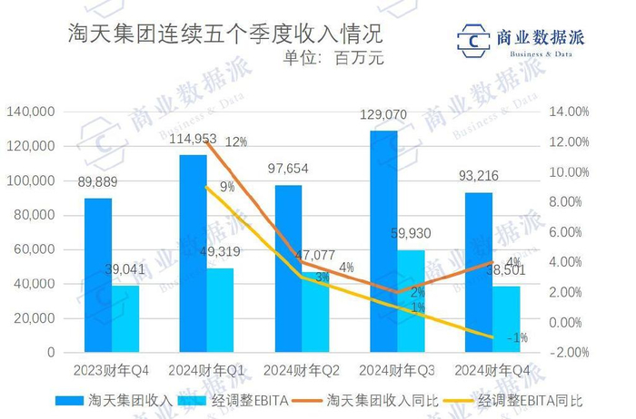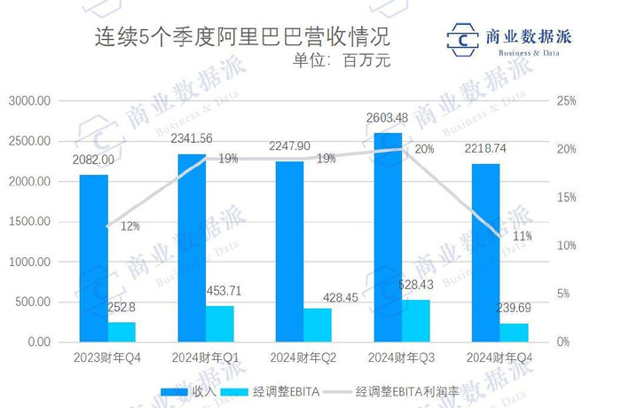 据财报显示,该季度淘天集团经调整EBITA为385.01亿元,同比下滑了1%,主要是由于为提高消费者留存率,并提升购买频次,以及科技基础设施的投入增加,部分被客户管理服务收入(CMR)增加所抵销。