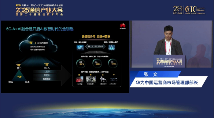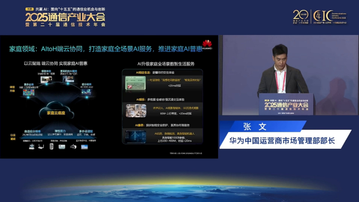 12月18日,在北京举办的2025通信产业大会暨第二十届通信技术年会上,张文深入剖析了5G-A与AI融合背景下通信产业的变革趋势,并详解华为与运营商在个人(C端)、家庭(H端)及行业(B端)的创新实践。