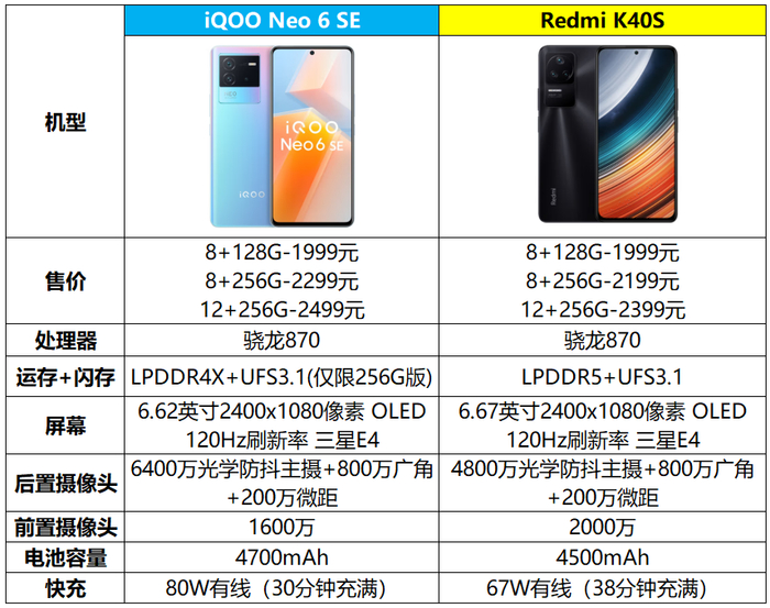 iQOO Neo6 SE和Redmi K40S这两款骁龙870新机,你觉得哪一款更好?