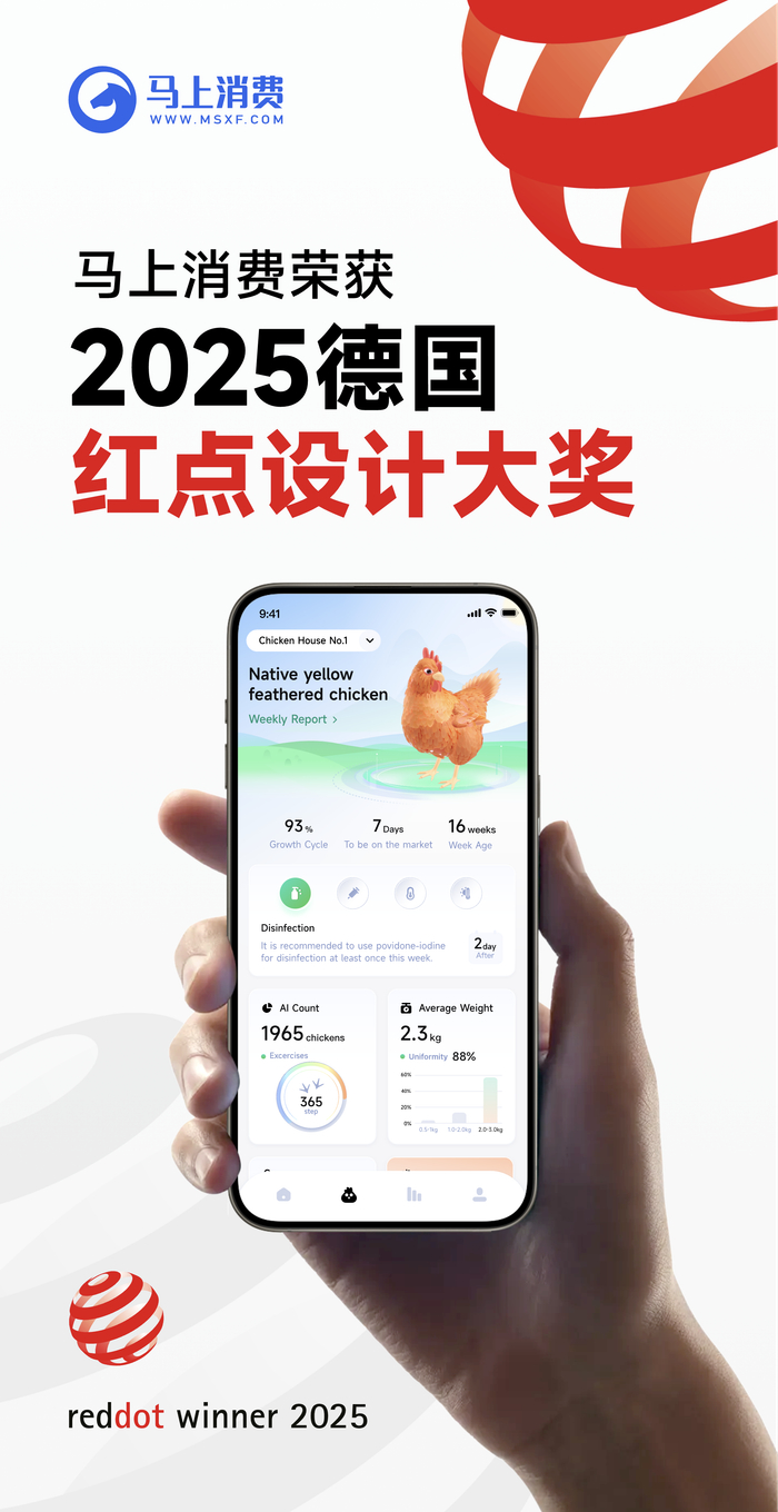 马上消费此次获奖作品为智慧养殖产品界面设计。该作品从近万件参赛作品中脱颖而出,经国际评审团多轮综合评定,最终凭借充满人文关怀的设计理念、简洁直观的操作界面和零门槛的交互体验赢得认可。该项目作为马上消费“科技让生活更轻松”使命的创新实践,体现了设计为实际应用场景赋能的切实价值。