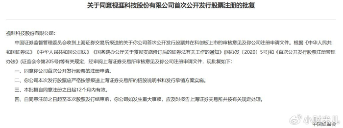 小财米注意到,2026年1月15日,证监会网站披露,同意科创板企业视涯科技股份有限公司的首次公开发行股票注册的批复。