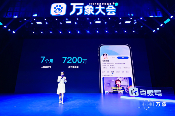4月26日,在2021百度移动生态万象大会上,百度百家号总经理杨潆公布平台创作者数量已经超过420万,未来,百家号将从“角色”和“场景”两个层面进行升级,同时发布“领潮计划”,以1亿现金与100亿顶级流量及多重奖励机制赋能青年创作者。