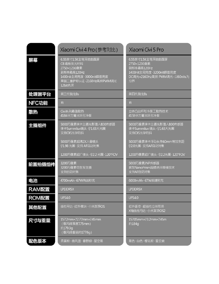 细心的读者应该还记得,一年前的三月,小米给CIVI 4赋予了“Pro”的后缀,开始了与之前CIVI系列颇为不同的征程,也就是我们前面提到的“性能与美学兼具的竞争力”。彼时,卢伟冰把它定位为“小14 Pro”,提出其拥有Pro级的设计、影像和性能。这种直接以Pro后缀状态发布且“暂无标准版”的形式,是第一次出现在小米的CIVI机型上,而此时,小米CIVI 5 Pro继续沿用这个命名思路,初心不变。