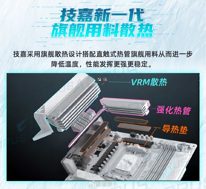 电竞冰雕X870E:搭载20(16+2+2)相供电方案,虽相位数量略多,但单路电流规格更侧重稳定输出,配合8mm热管+全覆盖散热装甲,同样能确保X3D处理器长时间高负载不蓝屏,满足游戏场景下的功耗需求。