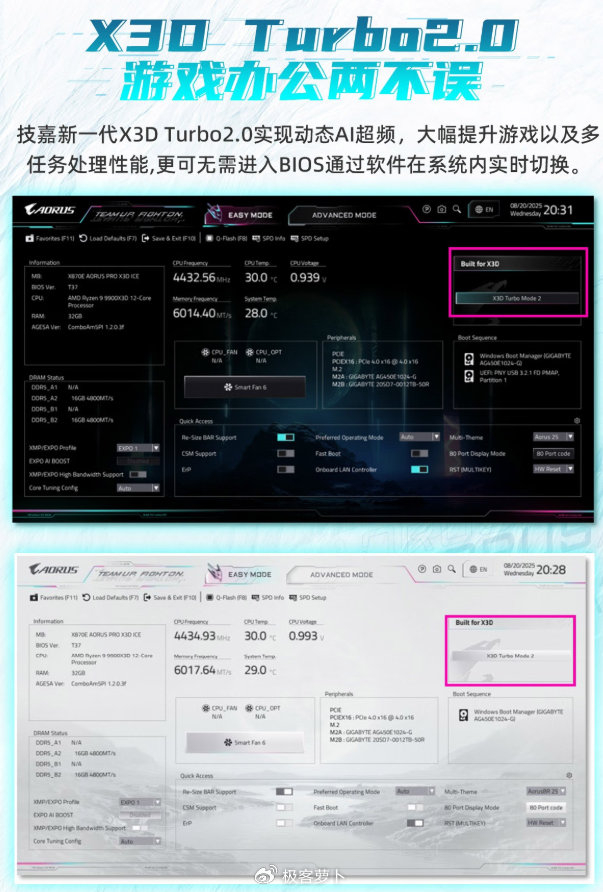 两款主板均搭载针对X3D处理器的专属技术,降低高端平台使用门槛: