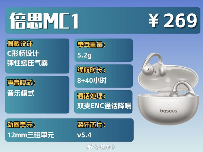 倍思 MC1 的续航表现挺好,单次充电能用 8 小时,加上充电盒综合续航能到 40 小时,日常用着不用为电量担心。另外,IPX7 级防尘防水能应对运动时的大量出汗和突发小雨,日常使用能省心不少;用传统物理按键,配合倍思 APP 还能自定义功能,操作简单,也不容易误触,就算在运动的时候也能轻松控制;蓝牙 5.4 在连接性能上,稳定性高,连接速度更快。