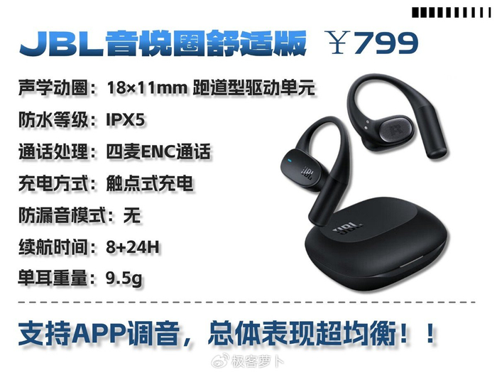作为 JBL出品的耳机,音质确实没让人失望。18×11mm 的跑道型驱动单元,比普通圆形单元发声面积大,低中高音过渡很自然。最实用的是能连官方 APP 调音,能按自己的喜好调均衡器,就能把低频调得稍高些,可玩性挺高的。