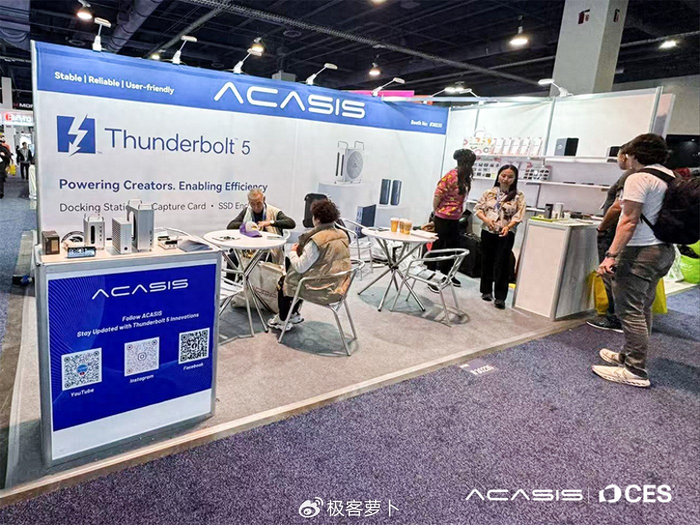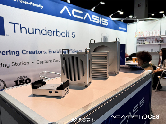 2026 CES 消费电子展拉斯维加斯现场,阿卡西斯(ACASIS)展位前人头攒动,#30235 号展台被专业创作者、技术发烧友围得水泄不通 —— 全球首款 4 盘位 Thunderbolt 5 外置存储系统重磅亮相,搭配雷电 5 扩展坞、Mac mini 专属方案,直接掀起一场高速数据生态的革新风暴!