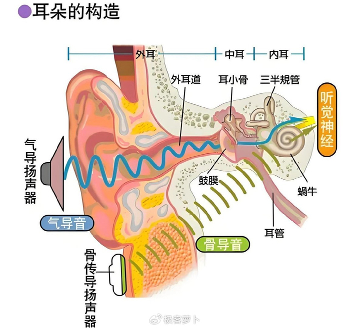 另一种是骨传导耳机,通过骨头的振动来传递声音,声音直接传至听觉区域,同样不需要堵塞耳道。
