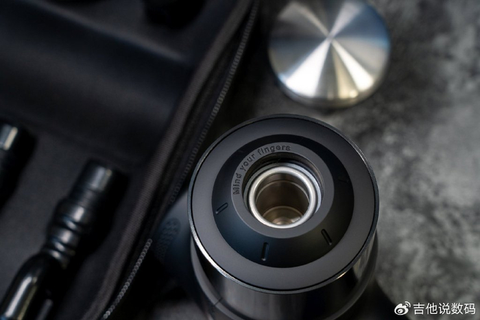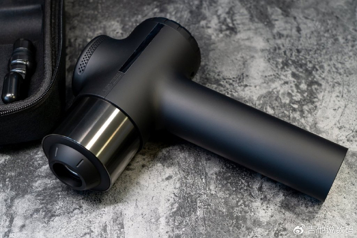未野ProMax的做工非常细腻,机身各个区域的细节都得到了很好的处理,在按摩头安装区域还贴心的标注了“小心手指”的文字。机身顶部设计有大面积的散热孔,毕竟这款筋膜枪的性能非常的强悍,确保电机工作时的热量能够快速散发出去。
