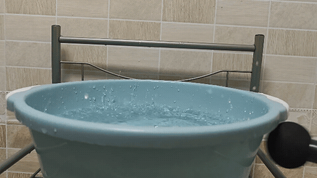 此外未野ProMax还配备了2+4双通道核定震频技术,有效降低了推力与震频损耗,从而能够实现更高的击打精准度以及更好的性能。笔者进行了测试,用未野ProMax击打水盆时,可以看到溅起的水花不仅多还很均匀,说明筋膜枪的力量深入到了水盆各个区域,性能真的够强悍。