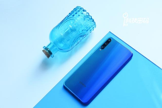 荣耀Play3的背面是最具吸引力的地方,你能看到星光律动纹理的机身,透过玻璃板通透的质感,实现视觉3D的炫光效果。