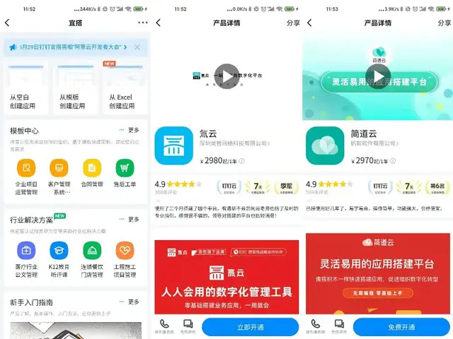 在钉钉上,有不少低代码开发工具,如宜搭、简道云、氚(chuān)云,周勋凭个人喜好选择了氚云。