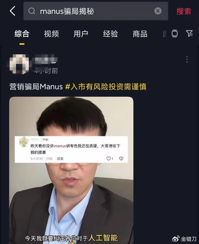 唯一一次短暂出圈,是他在去年3月推出了AI智能体“Manus”。最火的时候,一个邀请码被炒到10万。但很快,又陷入到“没有自研大模型、没有创新全是套壳、营销炒作”的质疑声里,抖音上甚至出现了#Manus骗局揭秘#的话题。