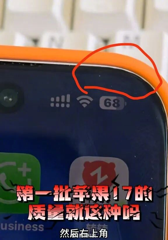 有网友称,自己的iPhone 17 Pro右上角屏幕与铝合金边框接缝处,呈“波浪形”,疑似切割工艺有问题。