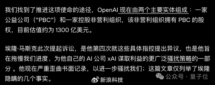 OpenAI称马斯克不断提起诉讼是为了拖延OpenAI的研发进度,给自己的xAI公司争取更多时间。