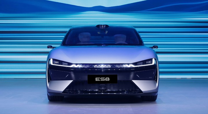 外观上,ES8 采用窄条幅封闭式前脸、隐藏式大灯与一体式全景穹顶,车尾配备主动升降扰流板和贯穿式动态尾灯,整体造型兼顾科技感与运动气质。