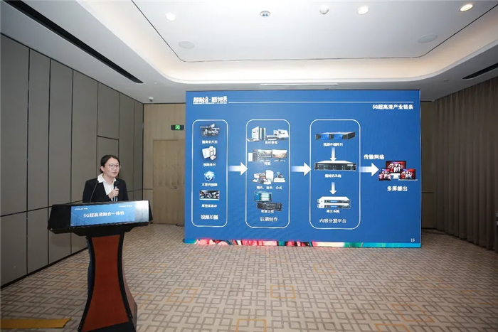 【北京未来媒体科技股份有限公司技术总监王倩介绍5G超高清内容现状与5G超高清融合一体机功能与特点】
