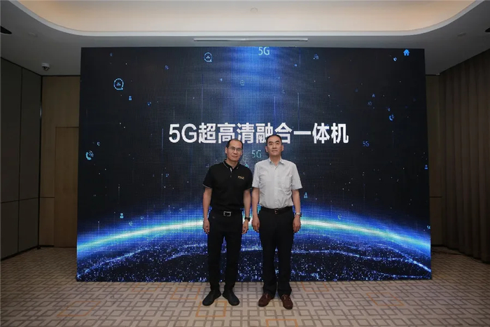 【北京未来媒体科技股份有限公司董事长陈长伟与百度智能云副总裁、北京百度云途腾科技有限责任公司总经理刘江涛共同发布“5G超高清融合一体机”】