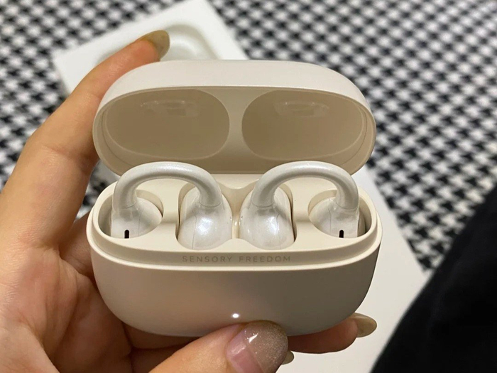 佩戴方面:这款耳机耳翼支持拆卸,调整后能更好贴合耳廓,佩戴适配度挺不错。单耳仅 5.7g 的重量,上耳基本没什么负重感,美中不足的是机身整体材质偏硬,长时间佩戴下来,耳朵会产生明显不适感。