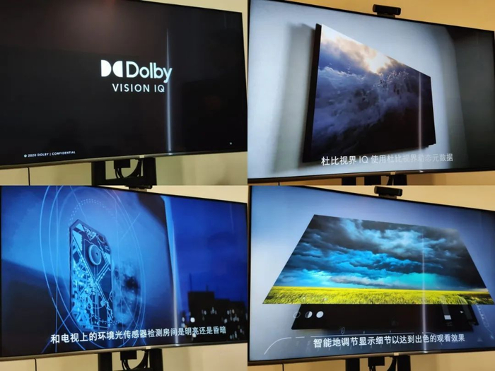 3、杜比方面新推出了一个叫做“杜比视界IQ”的东西,据说目前已经在国内海信电视机上落地。这是一个利用电视机自带灯敏传感器,对画面进行实时优化调整自适应的工具。其实我觉得这玩意有点类似一些电视机上自动调节亮度的智能背光系统,但杜比方面会做的更加精细一些?有关杜比视界IQ,我目前还没有看到实物,所以有机会再研究下;
