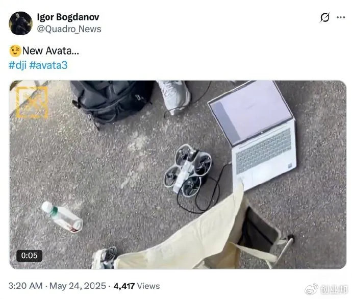 【大疆Mini 5 Pro/Avata 3/Neo 2无人机曝光,有望近期上市】5月25日消息,大疆近日推出了DJI Mavic 4系列无人机,而如今有多个消息源声称大疆Mini 5 Pro、Avata 3和Neo 2无人机正在积极开发中,有望近期上市。在Mini 5 Pro方面,该机已在FCC注册表中出现,消息源JasperEllens透露预计将于今年9月发布。而在DJI Avata 3方面,这款无人机的实拍谍照目前已被消息源Quadro_News流出,显示该机将具备更大尺寸的相机传感器,同时改进了桨叶设计。此外,消息源OsitaLV还透露大疆在开发Neo 2无人机,但目前对于这款无人机的各种细节都暂不知悉,只知悉该机在开发中,预计将在今年内发布。(IT之家)