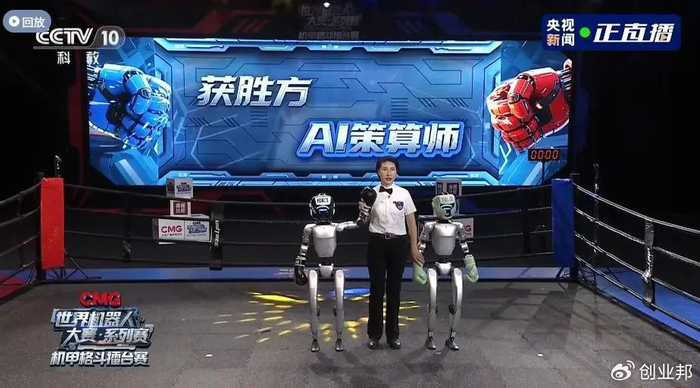 【全球首个人形机器人格斗赛开赛,宇树G1擂台激烈对打】5月25日晚,由中央广播电视总台主办的《CMG 世界机器人大赛・系列赛》机甲格斗擂台赛在浙江杭州拉开帷幕,这是全球首个以人形机器人为参赛主体的格斗竞技赛事。