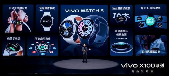 此次发布会还推出了全新升级的 vivo WATCH 3 。产品外观采用3D超大弧面玻璃和不锈钢数字表冠,整体更具个性化,配合软胶与真皮两种材质的表带以及多元化的表盘,打造专属风格。同时,vivo WATCH 3还首发搭载自研蓝河操作系统,升级多通道星环健康监测,拥有专业AI跑步教练和百余项运动等功能,提供更便捷更科学更健康的体验感受。vivo WATCH 3蓝牙使用场景下最长续航可以达到16天,且支持独立通信,该模式下常规使用场景续航可达7天。同时,新增了手表应用商店,可下载使用微信、支付宝、百度地图等第三方App。