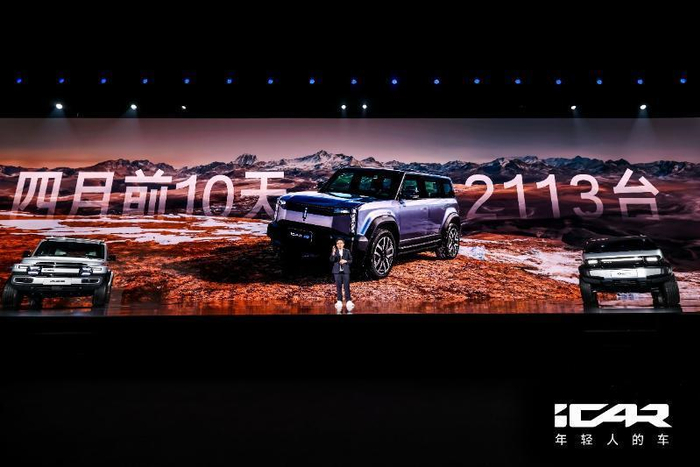 iCAR品牌正是依托这一百宝箱,精准地掏取出年轻用户所需的适合技术。iCAR首款产品iCAR03上市即走量,3月份销售5487辆,4月前十天销售2113,环比增长81%,热销态势势不可挡。