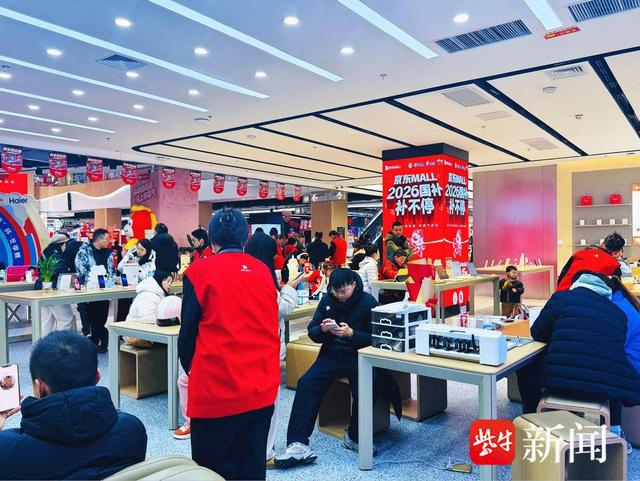 2026年1月1日,京东MALL、京东电器、京东五星电器在江苏地区的120家自营门店已经全面启动2026年家电国补活动,15%的国补立减,叠加京东跨年大促,迅速点燃了消费者的换新热情。从首日销售数据看,空调、手机、彩电、冰箱、洗衣机等品类消费热情高涨,空调和手机成为最受欢迎单品。