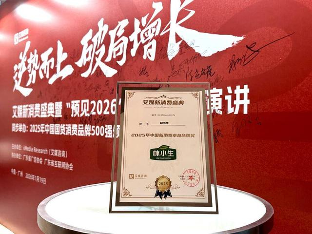 2026年1月19日,新经济产业智库艾媒咨询主办的艾媒新消费盛典在广州举行。本次艾媒新消费盛典以“逆势而上,破局增长”为主题。会上提到,当下消费市场的底层逻辑已从过往单纯的功能满足升级为与消费者的深度情感共鸣,“更健康、更文化、更智能”成为核心趋势。其中,“更健康”意味着健康需求重塑消费决策,锚定健康生活方式赛道成为品牌破局关键。现场揭晓了2025年中国国货消费品牌500强等系列品牌榜单。健康食品品牌林小生凭借产品创新和高增速表现,荣获“2025年中国新消费卓越品牌奖”。共同获奖的还有糕点品牌稻香村、个护品牌曼秀雷敦、智能家居品牌云鲸等。