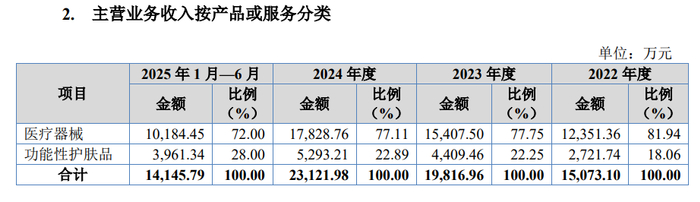 从产品类别来看,报告期内,公司主营业务收入主要来源于医疗器械产品。报告期内,公司医疗器械产品收入分别为12,351.36万元、15,407.50万元、17,828.76万元和10,184.45万元,保持稳定增长趋势。