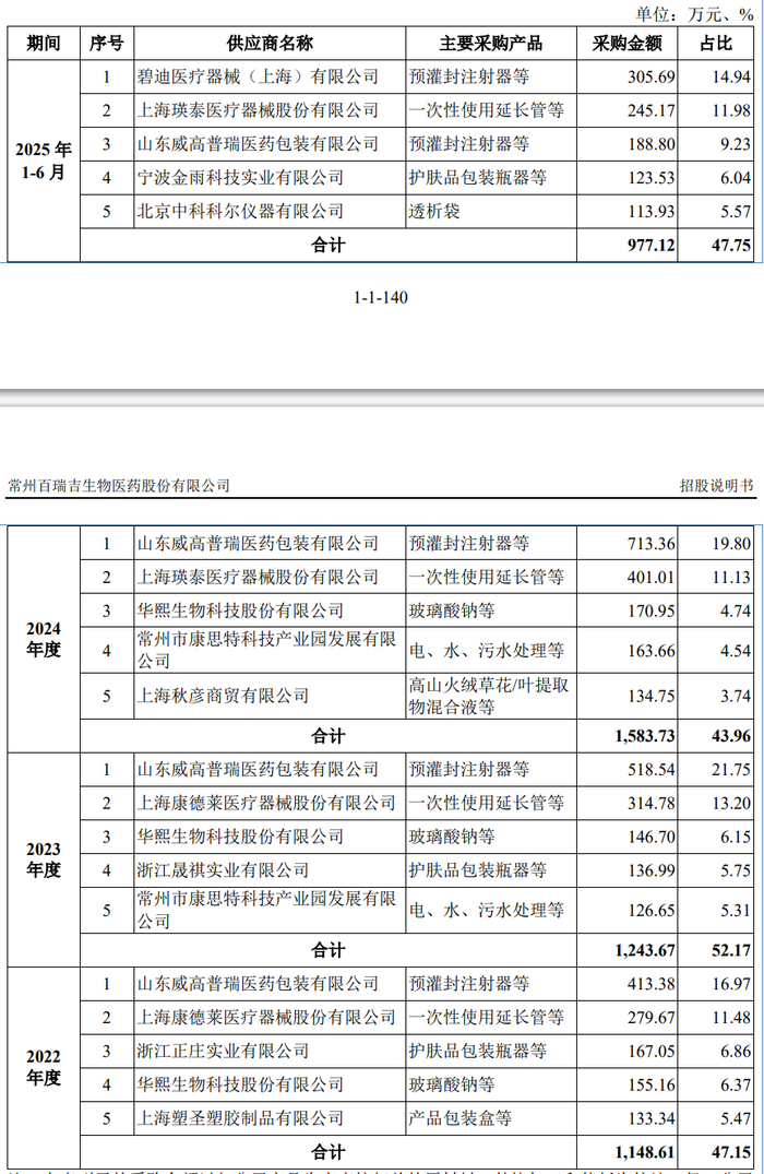 报告期内(2022年至2025年上半年),百瑞吉的营业收入分别为1.51亿元、1.98亿元、2.31亿元、1.41亿元;净利润分别为3106.44万元、5007.84万元、5231.16万元、4074.88万元。
