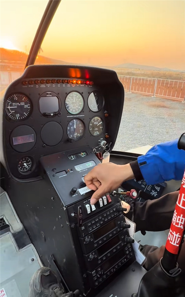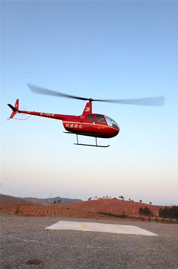 据当事博主陈先生介绍,他以前当兵时就是飞行员,2023年花费500多万元购买了这架罗比逊R44型直升机。