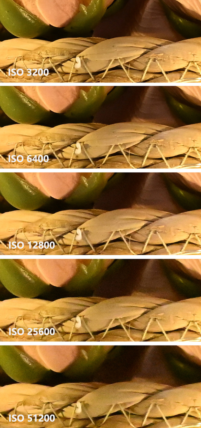 这次尼康Z5II的高感表现令人印象深刻,得益于EXPEED 7影像处理器,从上面实拍的高感对比截图可以看到,ISO 25600的感光度下依然能够有效控制噪点,保持画面细腻。即便是ISO 51200的高感下噪点控制依旧出色,画质仍然能够保持可用性,适合拍摄低光环境中的场景,尤其是在夜景或室内拍摄时,依旧能够提供清晰的影像。