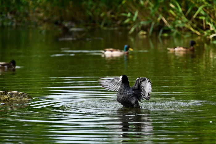 从放大画面中我们可以看出,羽毛层次分明,翅膀的纹理清晰可见,羽毛上的水珠也十分清晰。