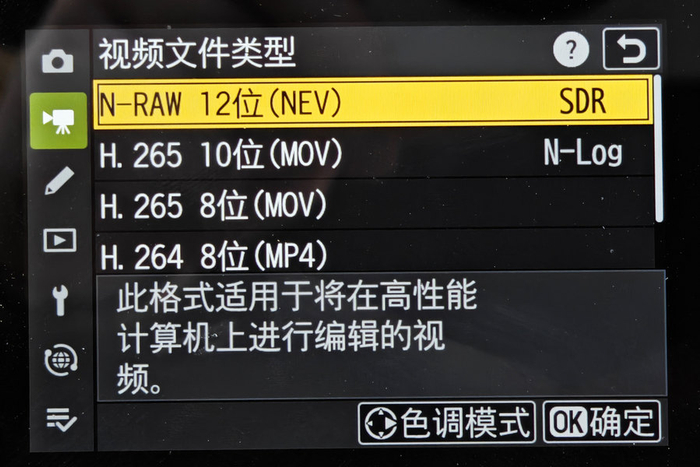 在色彩表现上,Z5II支持N-Log色彩曲线,并支持N-RAW格式视频内录,给予视频创作者更大的后期调色空间,这在以往很少会出现在入门级机型上。并且Z5II还有尼康与RED合作开发的LUT,能够提供电影级的色彩效果,使得影片后期制作更灵活和具有表现力。