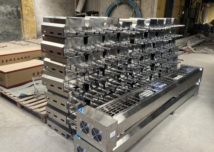 开车行驶在朱台镇街道,沿街林立着大大小小的商用厨具制造企业。在其中一家主营烧烤设备的企业厂区内,记者看到了小炭炉加工诞生的全过程。这家企业的老板李红(化名)向记者表示,“现在烧烤设备的订单已经接不过来了,想拿货至少要等半个月之后,而且4月底即将召开厨具节展会,我们也在赶制那一边的产品。”
