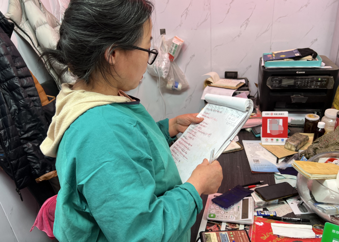 上午9点多,记者来到物流港内的伊老四牛羊肉的店,一辆五菱红光面包车刚装满了一车新鲜肉品从门前出发,而老板娘则在一份记录本上做着记录。“拿货的一般都提前预定,发了一单我就划掉一单,今天早上已经划了好几页的订单了。”伊老四牛羊肉的老板娘告诉记者。