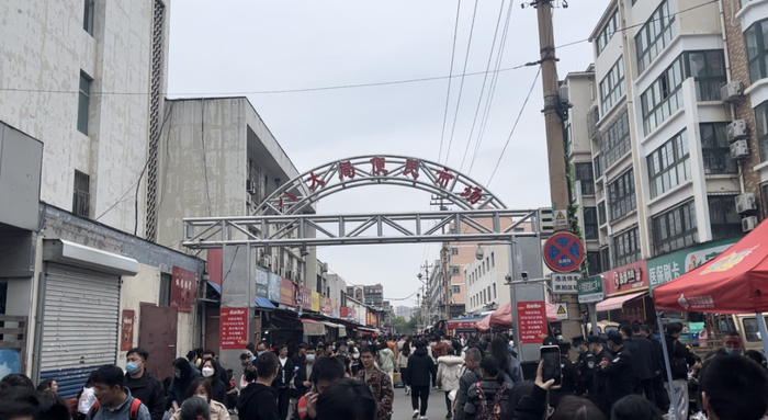 记者询问了多家烧烤店,均表示这个时间已经没有牛羊肉了,只能烤一些蔬菜和小海鲜。几个骑着三轮车卖糖葫芦的小贩从记者身旁经过,车上原本插着糖葫芦模具现在已经一根不剩。烧烤广场内还有几位周边小超市的员工胸前挂着小盒在卖香烟,每经过一个摊点都会被食客围拢。此外,还有不少网红博主正在直播带货。