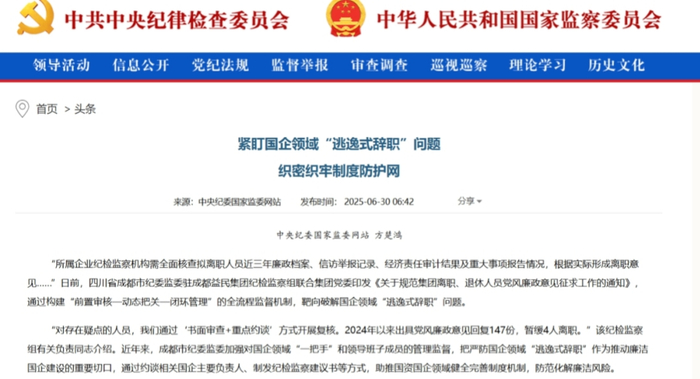 该征求意见稿在多个方面强化了对违规行为的追溯和监管,例如:离职审计升级,对辞职、退休人员启动倒查前三年专项审计,穿透式核查突击审批、异常决策、利益输送等暗箱操作;离任后跟踪机制:重点核查领导干部离职后是否到原业务范围内企业任职“捞油水”,切断权钱交易链条,深挖“期权腐败”。