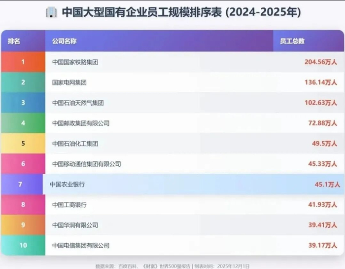 国铁集团、国家电网、中石油这三家员工超百万的“巨无霸”,其雇员规模本身就堪比一个庞大的社会系统,为数百万家庭提供了直接、稳定的收入来源。