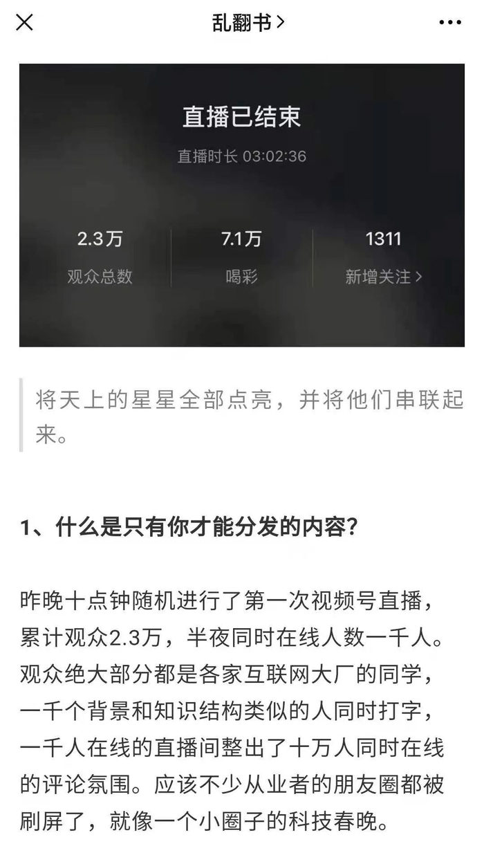 有一天突然意识到公众号涨粉的核心就是多更新,但实在写不动。但是多直播可以。。多直播很可能会撞上狗屎运。