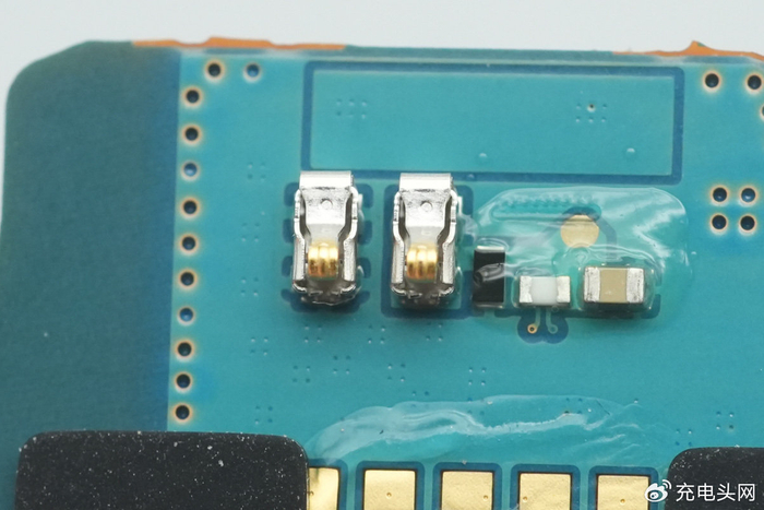 充电头网通过拆解了解到,充电盒采用的是三星自研电源管理芯片S2MUA02X,三星此前的多代家族产品上搭载的均是这款产品。此外输入过压以及LED指示灯控制分别采用力芯微ET9553M和ET6034AY。NFC无线充电方案采用恩智浦PN7362AUEV。充电盒内部模块主要使用固定柱以及螺丝固定,并设有保护垫进行垫隔和抗冲击,PCB板上的芯片打胶水保护,做工可靠。