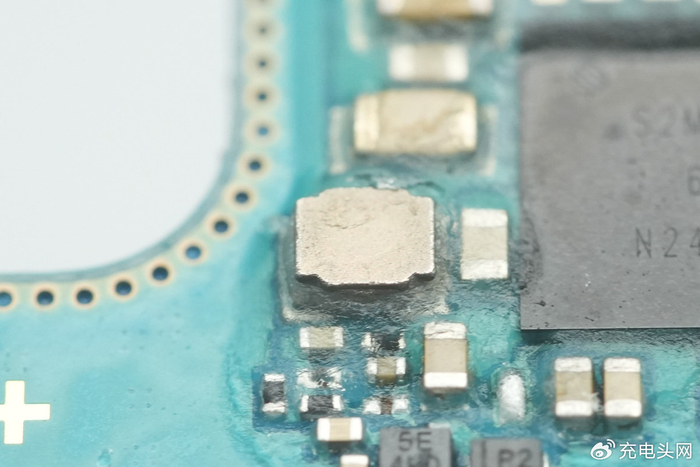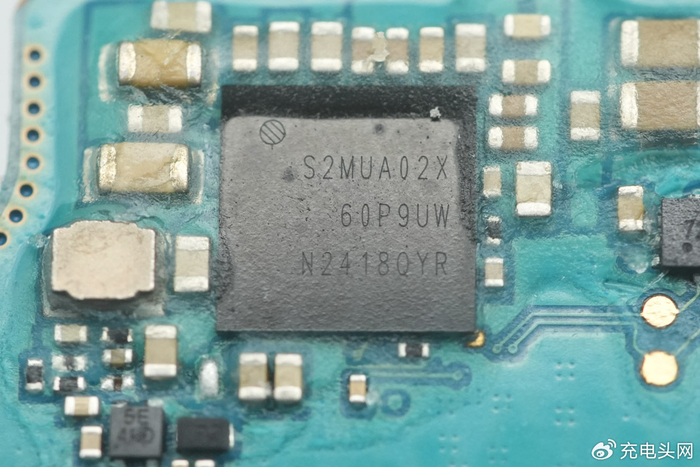 电源管理芯片来自三星,型号S2MUA02X,单芯片支持有线和无线充电,采用144-WLP封装,外围电路非常精简。三星此前的多代家族产品上均搭载了此系列电源管理芯片。